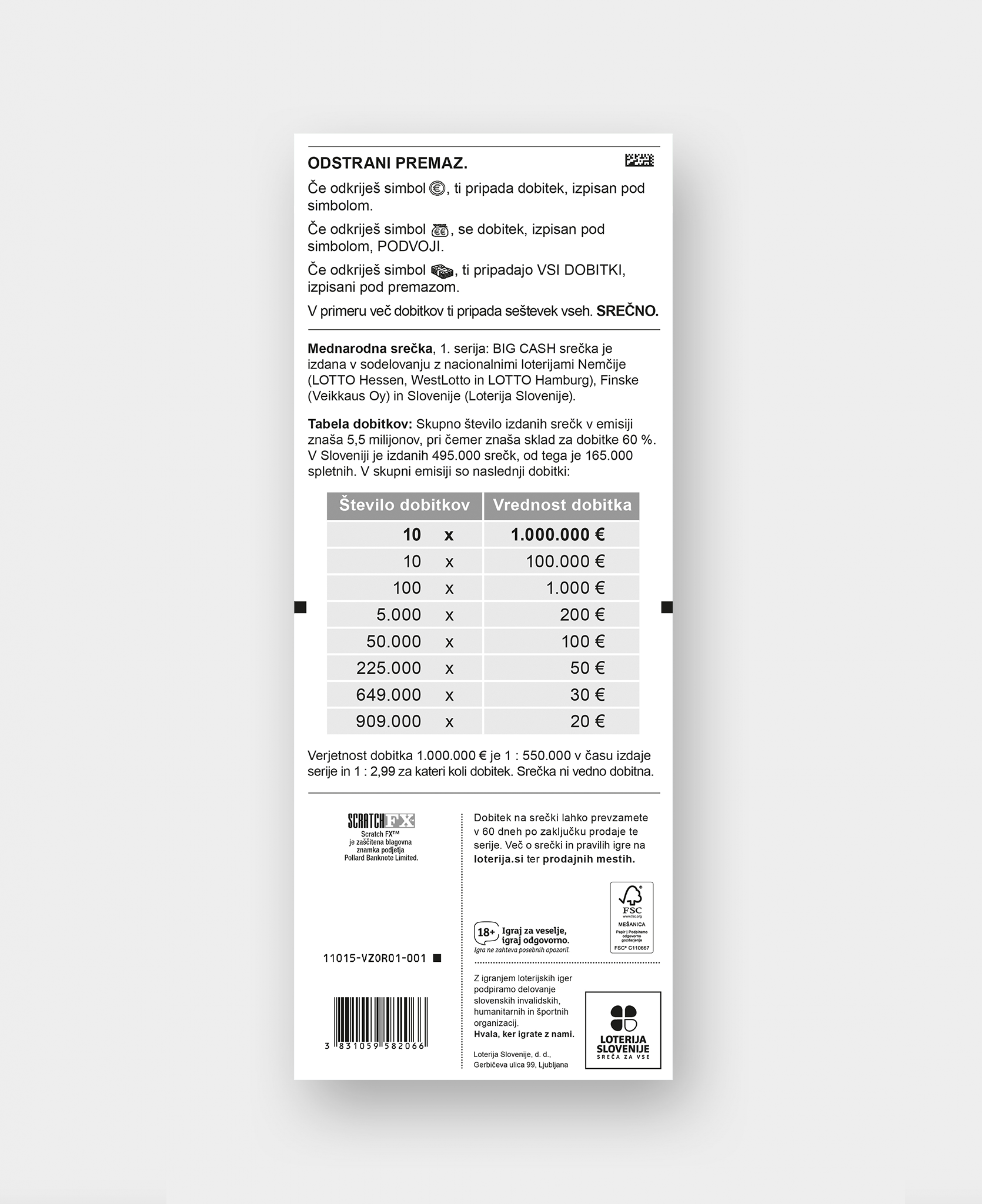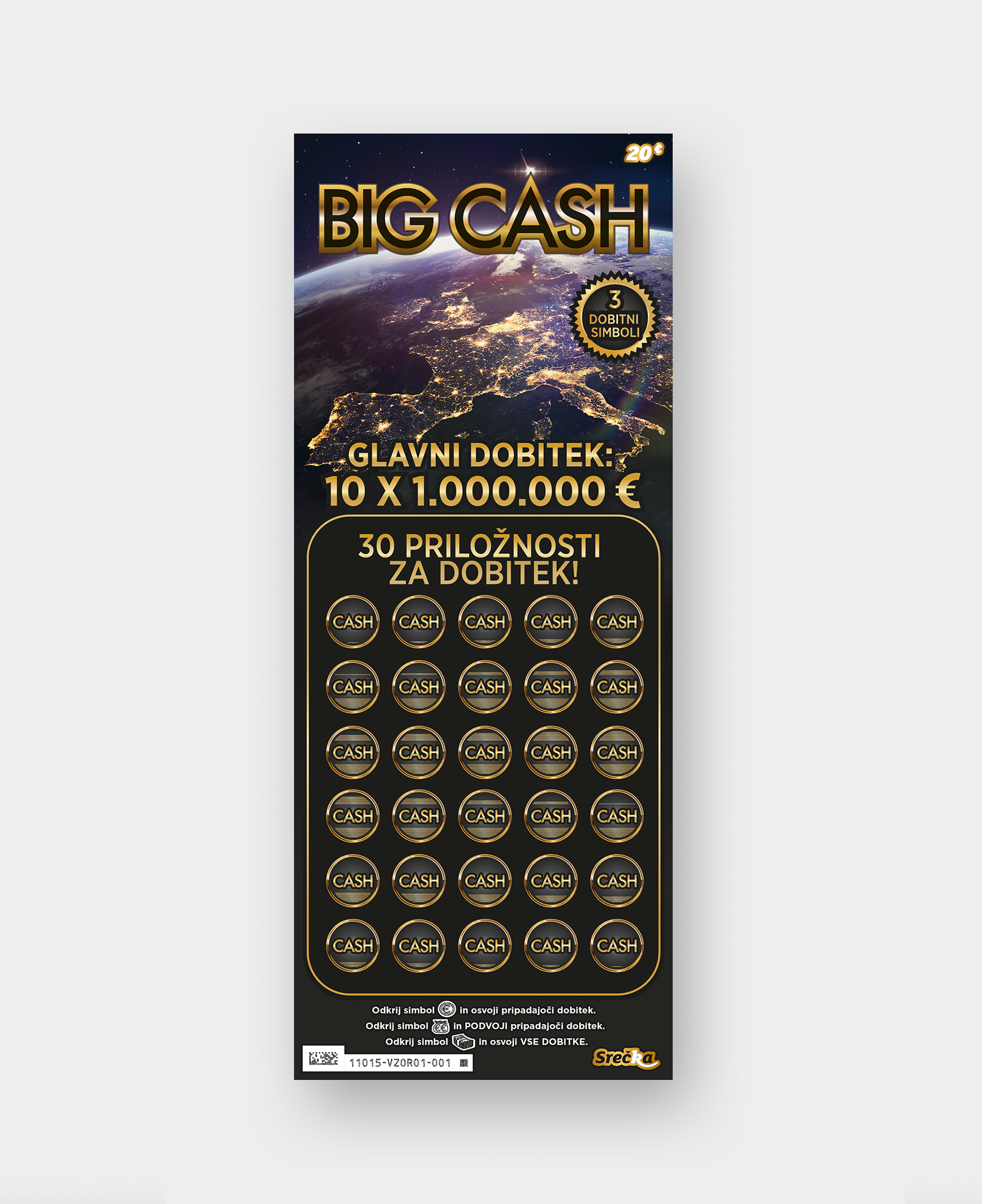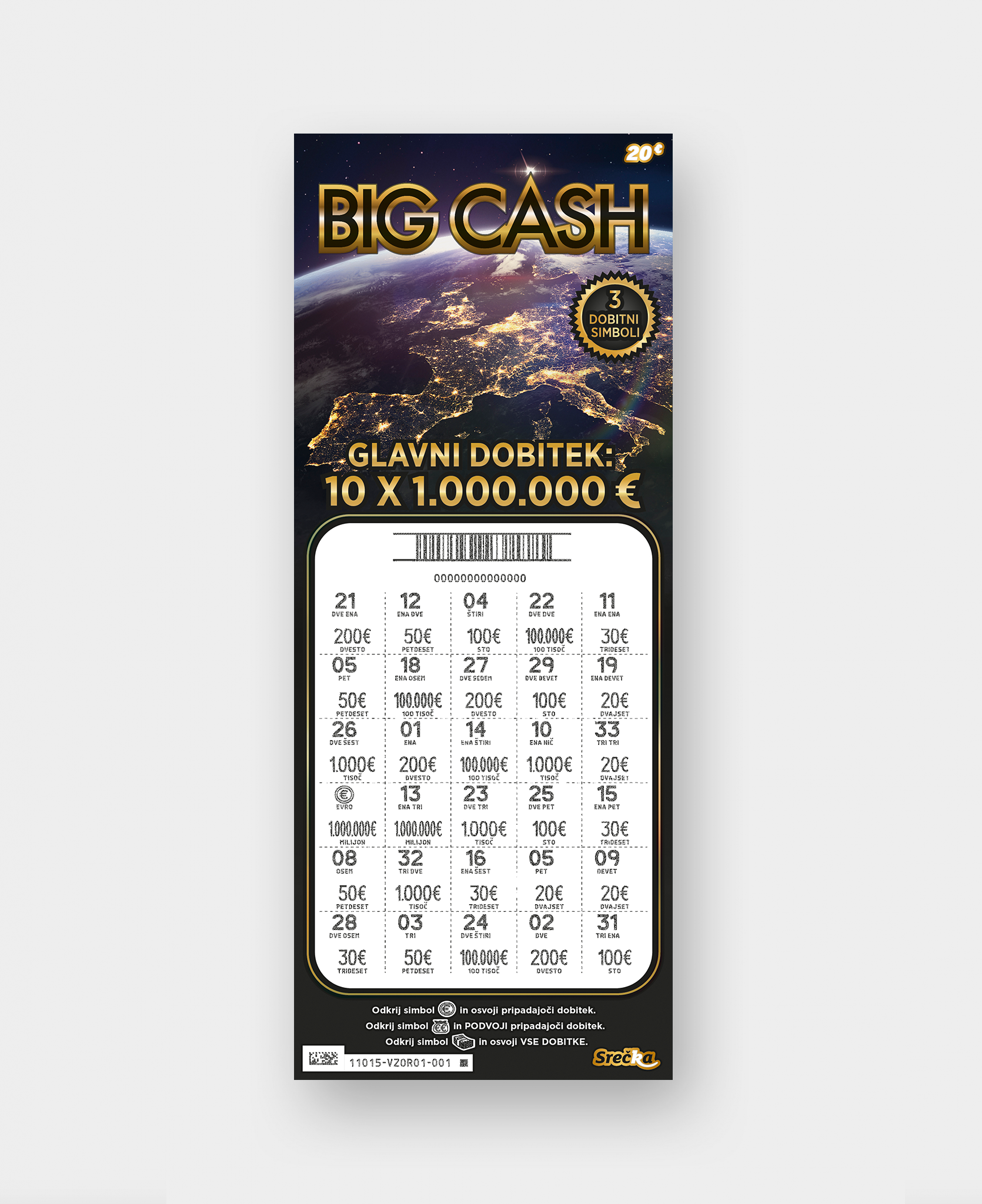 Popraskati moraš 30 polj, ki poleg številk lahko skrivajo tudi posebne simbole in njihove dobitke. Tvoji dobitki se seštevajo, nekateri simboli jih podvojijo, samo eno od polj pa lahko sproži milijonski finale.