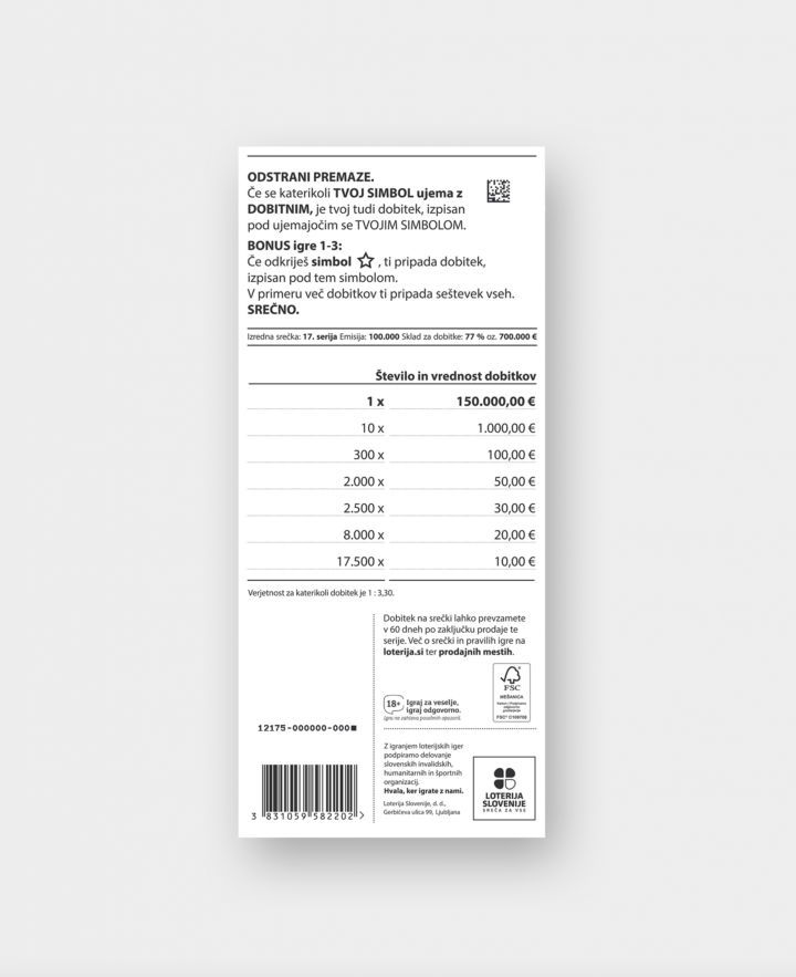 Verjetnost dobitka: 49,50 % oziroma 30.311 srečk